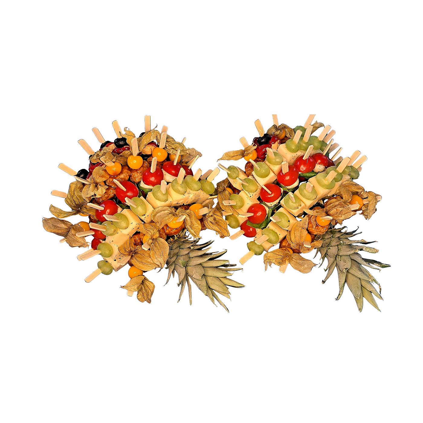 - 1 Platte Fingerfoodspieße - traditionell (4 verschiedene Sorten = 80 Stück / Platte) mit Fleischbällchen, würziger Emmentaler (vegetarisch), Kirschtomaten-Babymozzarella (vegetarisch), gefüllte Mini-Paprika (vegetarisch)