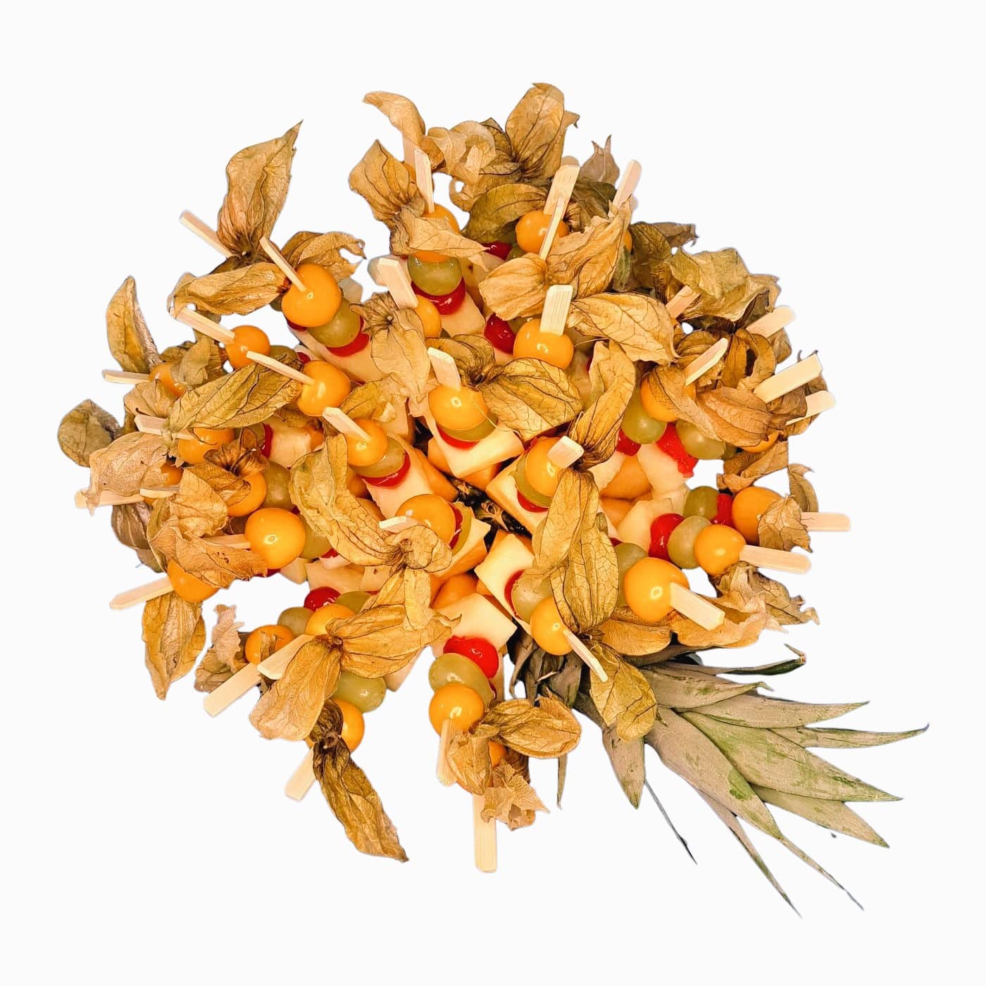 - 1 Platte Fruchtspieße mit 5 Früchten (1 Sorte = 40 Stück / Platte)